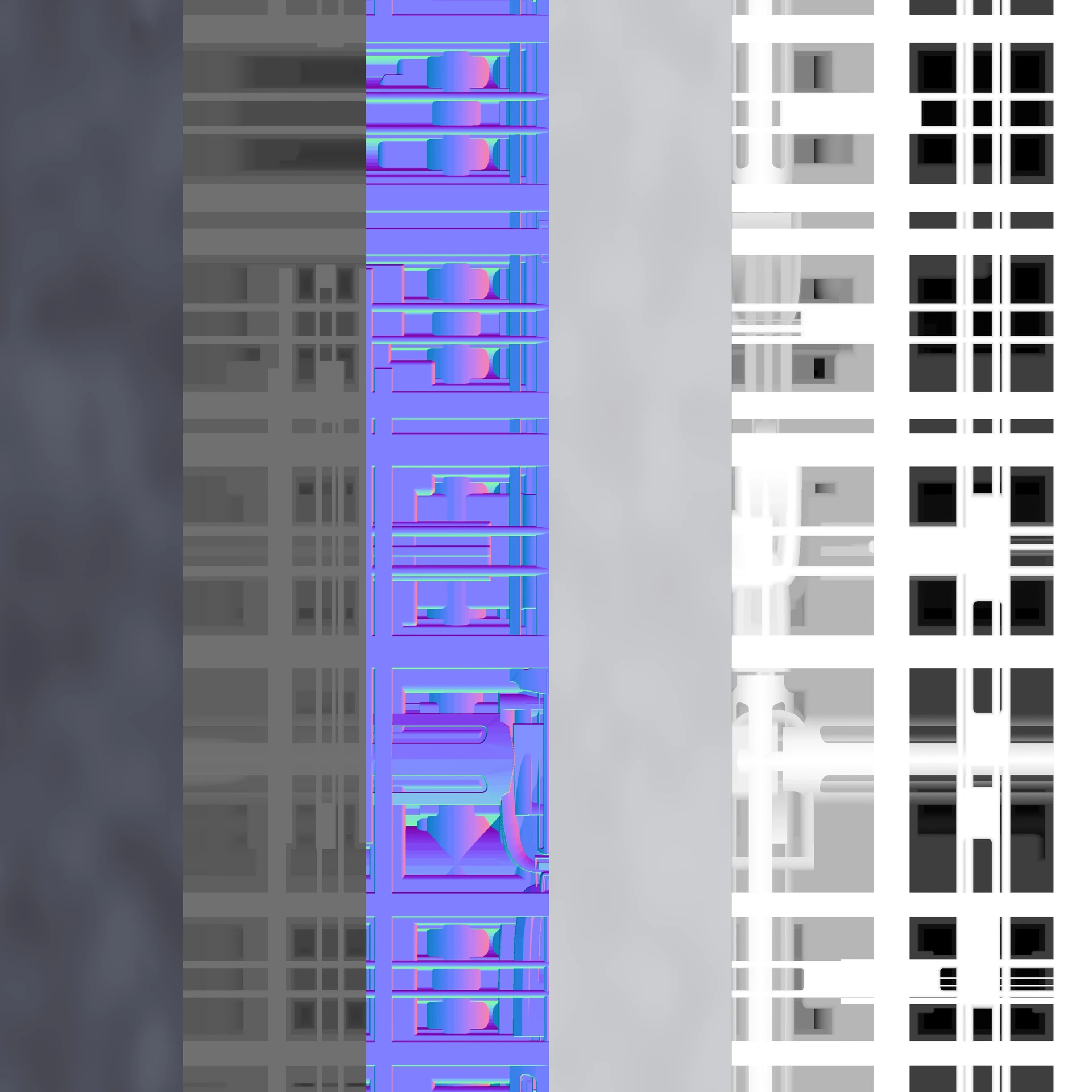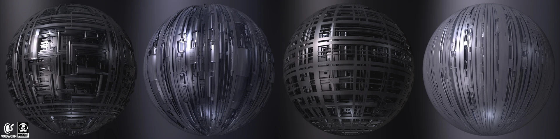 One of the two procedural materials I created for the 3d environments of Cosmophobia, an upcoming sci fi horror indie game by Voidworm LLC. I enjoyed designing this procedural material because of my love for kitbashing parts together to make new ones in regards to scifi designs. To achieve this widely versatile material, I created simple mechanical parts using CAD Plasticity’s efficient surface modeling toolset. I then extracted their alphas in ZBrush to then be converted into high quality normal and height maps in Subtance 3D Designer which were then all procedurally tiled. It was fun playing around with the settings to create entirely new complex machinery.