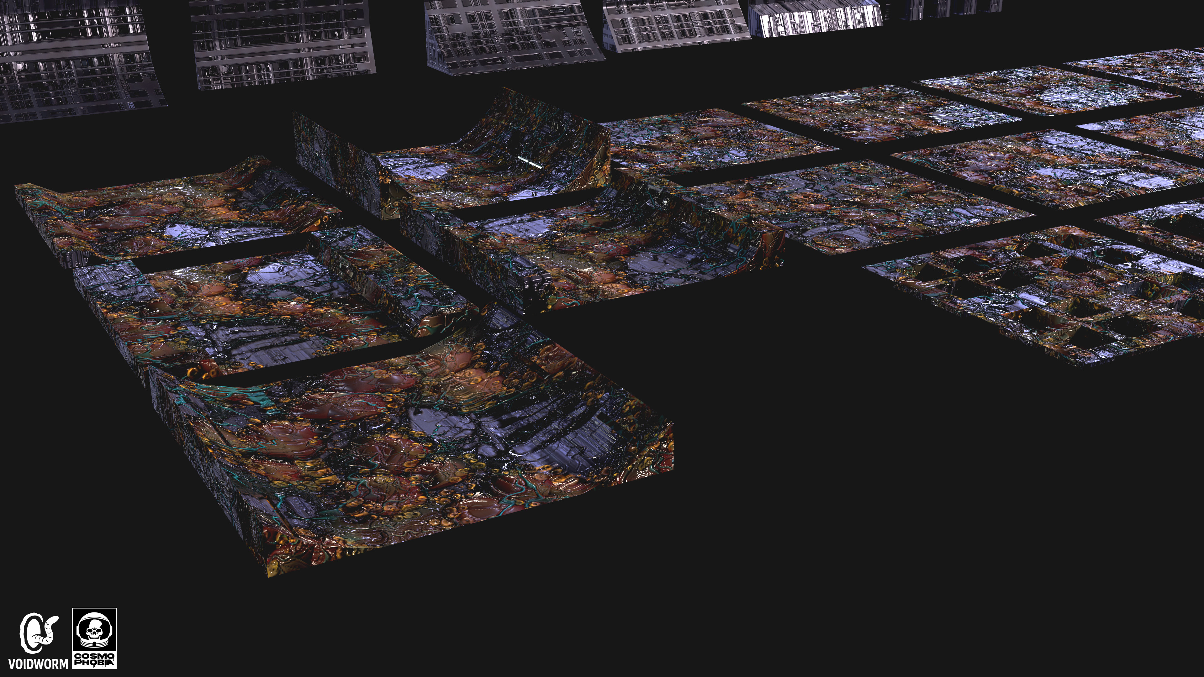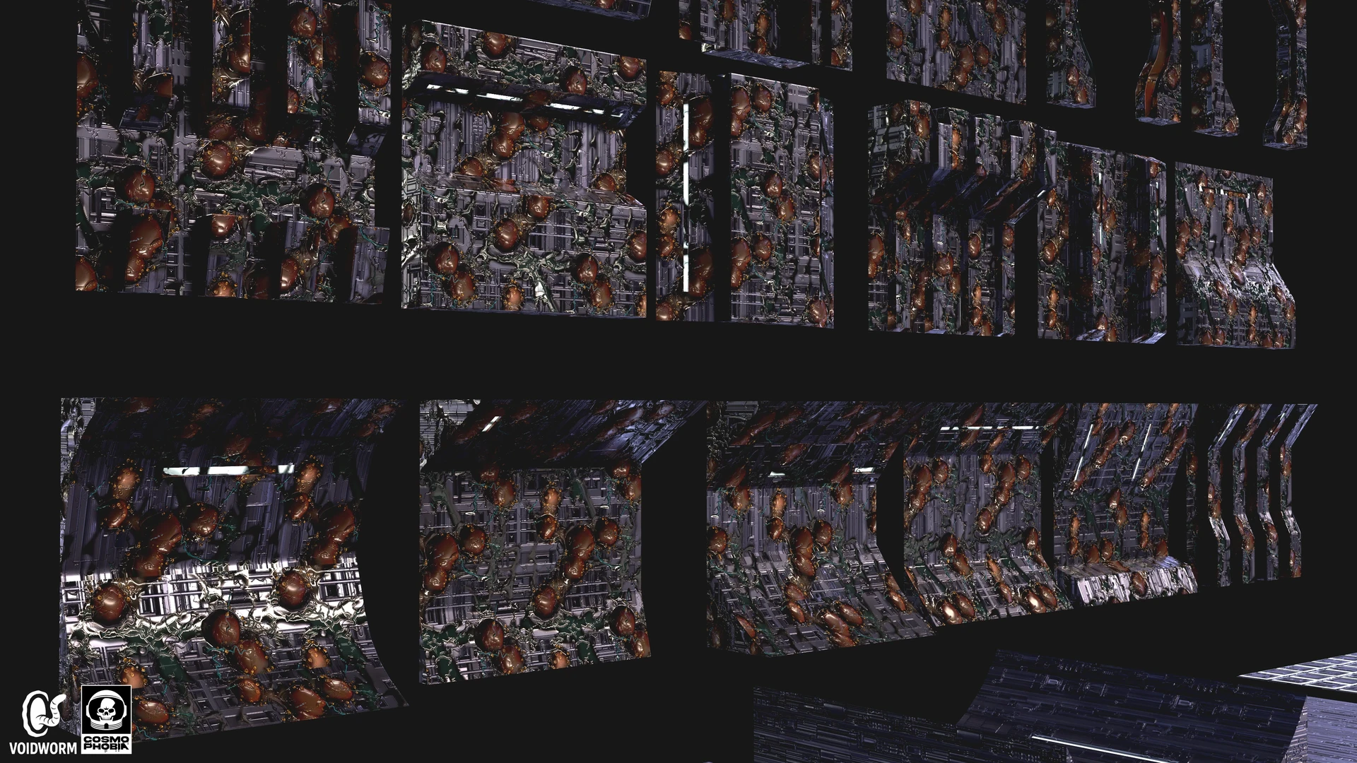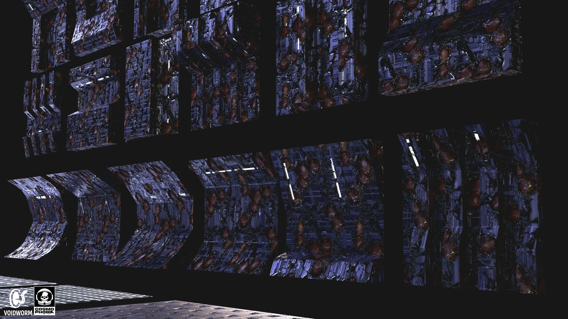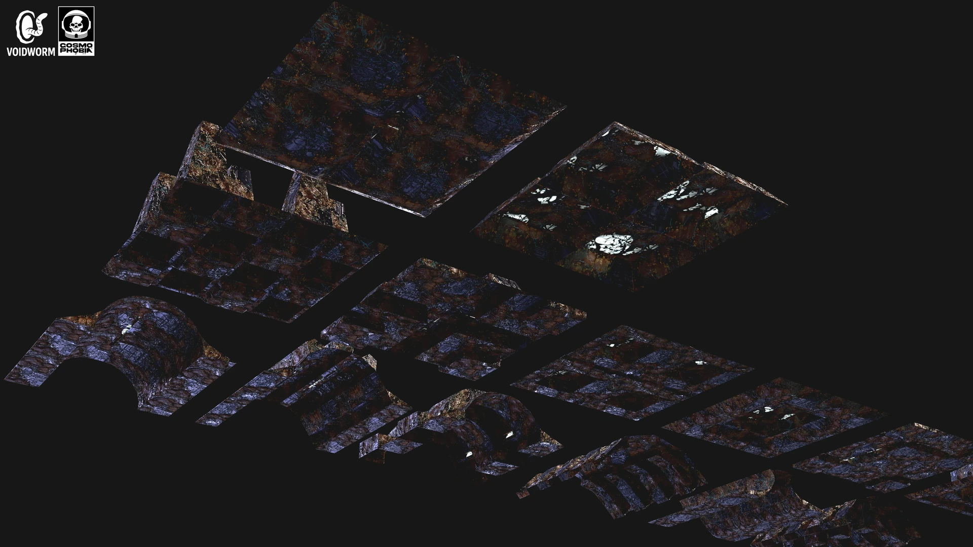 The many modular assets ranging from floors, ceilings, and walls that I created for the procedural environments for Voidworm LLC’s upcoming sci-fi horror indie game, Cosmphobia. These were interesting to conceptualize and 3d model since many of them can be combined with each other to create completely new assets due to their simplicity. It was also a joy seeing the two procedural materials I created prior, spaceship machinery & alien infestation, be implemented as the materials for these assets during the texturing stage. Each modular asset features three different stages of the alien infestation material I created for further variations for the environments in game. The combination of metal and organic matter will always be a pleasure to work with for me. I am very thankful for this wonderful creative opportunity to bring the studio owner’s vision to life.